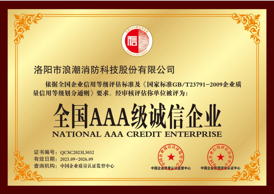 洛陽市浪潮消防科技股份有限公司深耕消防行業60年,一直把拯救生命,降低損失作為長期使命,多年來獲得了無數的殊榮,公司主營泡沫滅火劑,抗溶性泡沫滅火劑,蛋白泡沫滅火劑,高(中)倍數泡沫滅火劑,A類泡沫滅火劑等產品.公司以過硬的產品質量,優惠的價格,***的服務,獲得客戶的信賴,歡迎咨詢合作.企業榮譽