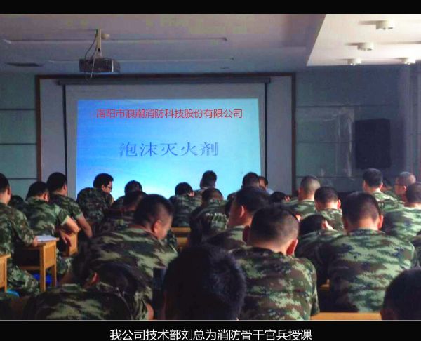 此次參加培訓的消防官兵為陜西省消防總隊,各市消防支隊和各消防大隊的骨干人員;公司劉總在此次培訓中,主要講述了我公司現在企業發展規模和狀況、企業的產品種類、新研發的滅火劑產品的使用及產品科技創新能力。同時講解了各種類型滅火劑的的滅火原理、使用范圍、主要成份及滅火特性等內容。